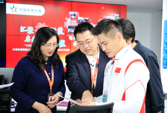 在何可欣见证摇奖过程的同时,另一位奥运冠军“举重军神”吕小军也来到了体彩开奖的第二现场——体彩运营主控中心。