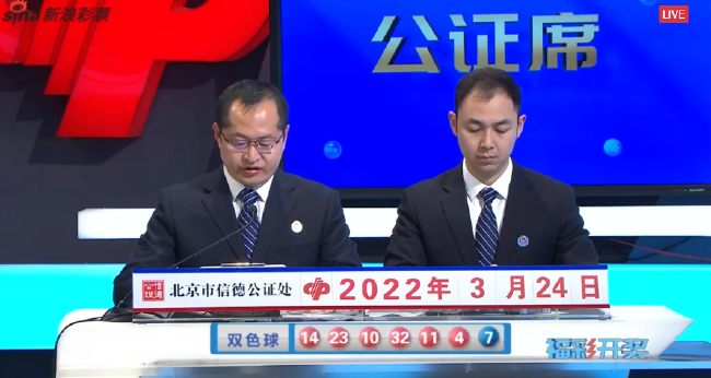 北京时间2022年3月24日,福彩双色球第22032期开奖,以下是详细开奖流程: