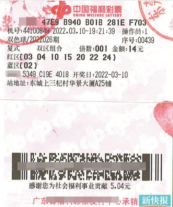 新快报讯 记者陆妍思 通讯员方志良报道 3月10日,双色球第22026期开奖,当期东莞中出2注双色球一等奖。2注一等奖分属两张7+1的复式自选票,总奖金都是753万元,分别由东莞东城44100849和企石44101339销售网点售出。企石彩民胡先生(化名)在3月14日就来到东莞福彩中心兑奖大厅兑走了其中1注一等奖,而另一位大奖得主却姗姗来迟,3月21日下午才出现在东莞福彩中心兑奖。大奖得主朱女士(化名)说是因为没有及时核对开奖号码,导致10天后才知道中奖。