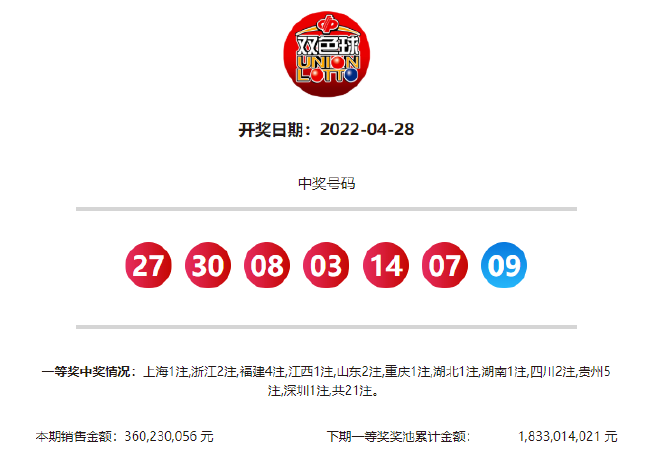 21:18 奖号全部产生,本期奖号:红球03 07 08 14 27 30,蓝球09 。