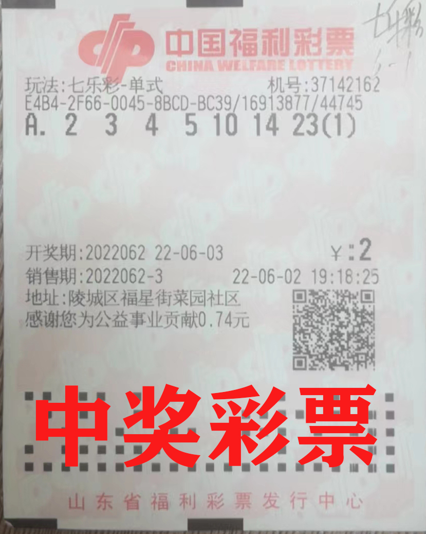 继5月8日德州陵城区爆出全国唯一一注“快乐8”选十中十500万元的大奖后,6月3日,七乐彩第2022062期开奖,全国中出2注一等奖,奖金1030880元,其中1注再次花落德州市陵城区。