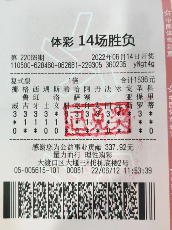 编者按:近日,来自重庆的彩民凭借1536元小单命中足彩一等奖,揽获奖金335万元。大奖得主是位足彩铁杆粉丝,投注时单挑了2场平局,不仅大方露脸仅戴口罩领奖,并且分享了自己挑选比赛的秘诀。无独有偶,足彩204万元大奖得主同样分享了自己的投注妙招。
