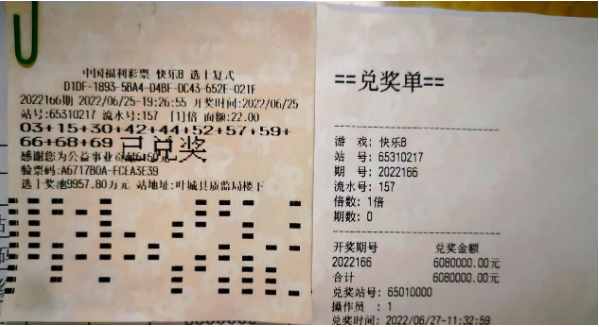 6月25日,叶城县65310217销售网点爆出喜讯,彩民托合提(化名)采用11码复式投注对“快乐8”游戏“选十”玩法进行投注,喜中10个号码!由于正值派奖活动期间,托合提额外收获“选十中十”派奖奖金100万元,奖金合计608万元!