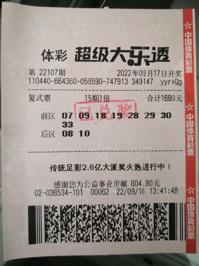 喜先生于9月16日在深圳体彩4402038534实体店(地址:罗湖区莲塘街道畔山支路28号粵兴工业园北侧之二)购买了一张“8+2”的复式大乐透彩票,并且投注了15期,没想到在第一期就中出了一等奖。该张彩票在9月17日中得22107期一等奖一注(奖金708万余元)、四等奖15注以及多注六等奖和八等奖,共收获奖金713万余元,贡献个人偶然所得税141万余元。