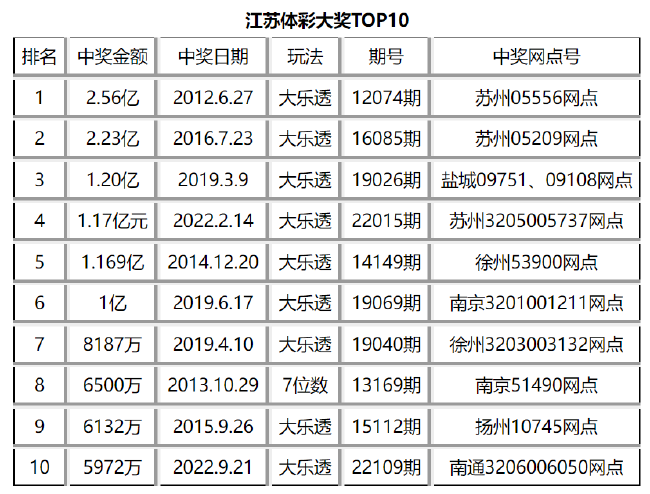 大乐透5972万位列江苏体彩大奖第十位