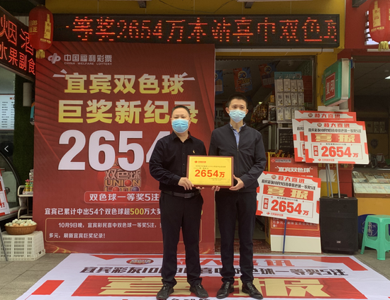 10月9日晚,位于宜宾市叙州区清溪路五十九号第51250019号福彩投注站中出超级大奖,该中奖彩票是一张10元单式投注彩票,中奖金额为2654万元!