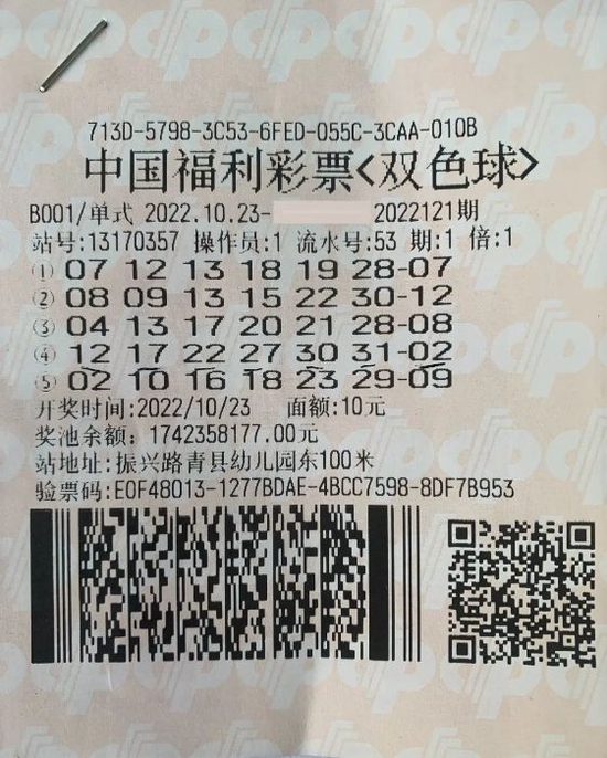 10月23日,双色球2022121期,沧州市青县华兴街博雅底商13170357站中出一等奖1注,单注奖金806.9743万元。第二天上午,大奖得主就在几位朋友陪同下领奖。