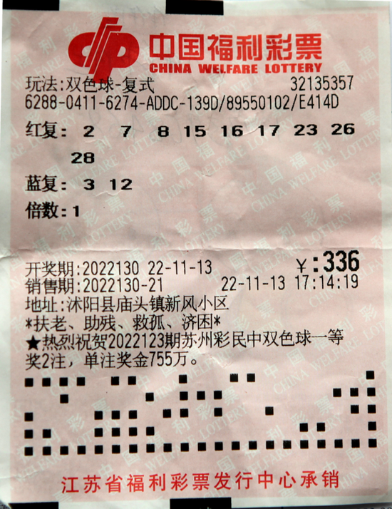 2022130期福彩双色球大奖5注花落江苏,宿迁沭阳县庙头镇32135357站点喜中一注。近日,该张9+2复式彩票589万多元的大奖得主来到省福彩中心兑奖,为我们讲述了一段感人的福彩温情故事。
