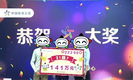 10月31日,福建31选7第22290期开奖,当期开出的一等奖出自泉州市惠安县螺阳镇嘉惠小区A区12号15631实体店,奖金141万余元。