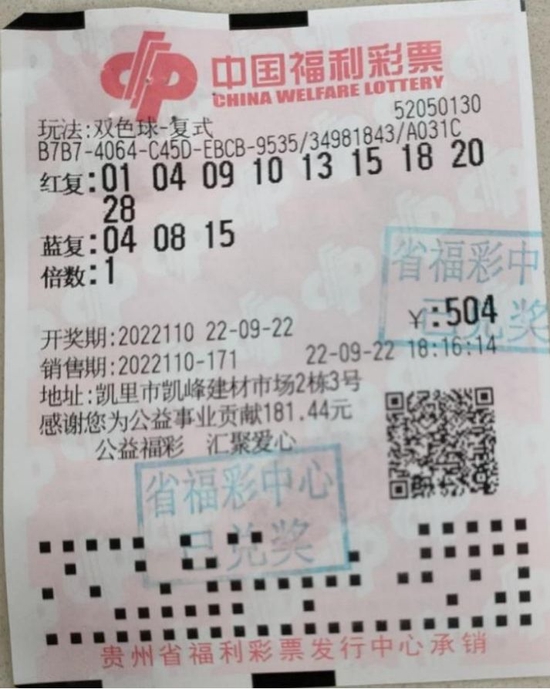近年来,通过复式投注获得大奖的朋友,是越来越常见。近日,我省黔东南就有彩民凭借一张504元的9+3复式票在双色球2022110期中夺得1注一等奖、2注二等奖、18注三等奖、81注四等奖、110注五等奖,将当期“大奖小奖一网而入”,奖金共计842万元,彩票售出于凯里市凯峰建材石场第5250130号投注站。