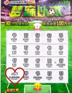 正好看见柜台上摆放着最新发行的“梦寐以求”刮刮乐新票时,突然想到11月21日凌晨,是足球世界杯开幕的好日子,就买了10张“梦寐以求”,和好友一块刮了起来。
