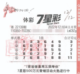 12月4日,7星彩第22139期开奖,泉州晋江市池店镇浯潭村泉安北路836号12829实体店购彩者陈先生中得一等奖1注,奖金500万元。