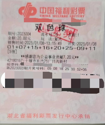 1月8日晚,双色球2023004期开出奖号:01 07 15 16 20 25+16。十堰市城区购彩者杨先生(化姓)购买的双色球,中出本期二等奖二十注。奖金总额高达298.85万元。