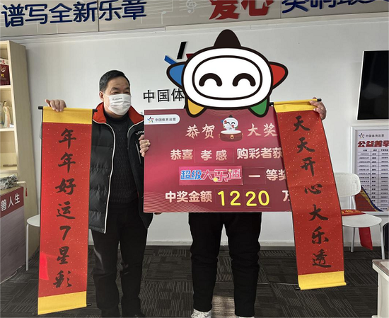 1月29日上午,开市第一天!孝感购彩者李先生(化姓)来到湖北省体彩中心办理兑奖,他要领取的是年前中得的第23008期大乐透一等奖,奖金1220万元!