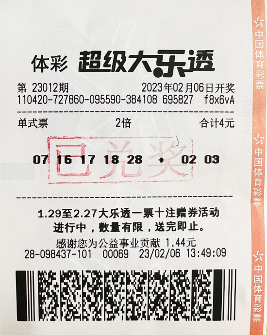 卢先生说,体彩各个数字玩法都有参与,尤其钟爱大乐透。这次中奖号码,是他根据历史开奖号码随手写下的,本想选两注不同的号码,后又临时决定打两倍。没想到幸运就此降临,中了两注一等奖,迎来开年大奖“双响炮”。