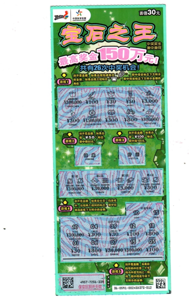 体彩顶呱刮游戏哪家“强”?面值30元的“宝石之王”无人挡!“宝石之王”一等奖150万元,是即开型体育彩票里目前奖金最高的一款游戏,一直备受青睐。票面设计大量宝石元素,视觉效果甚为精致。2月9日随着癸卯兔年第一场瑞雪的降临,也给购彩者带来了幸运,来自晋城高平市的购彩者“挖”出了“宝石之王”150万元大奖。