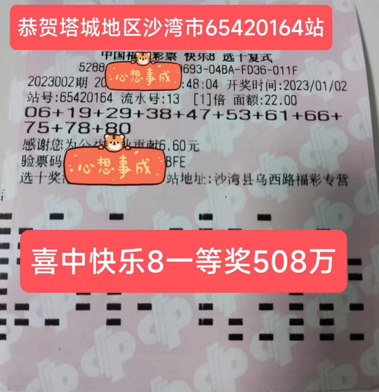 沙湾市彩民刚刚中得沃尔沃豪车不久,幸运再次降临这个小城,65420164销售网点彩友赵先生(化名)中得快乐8游戏508万元丰厚奖金!
