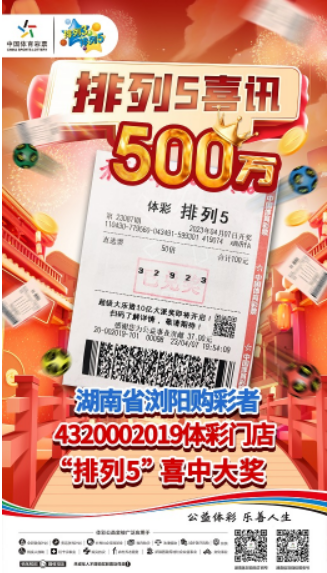 500万大奖!这是浏阳购彩者从体彩排列5游戏中收获的惊喜!4月7日晚,排列5游戏第23087期开出奖号“32923”,我省浏阳市嗣同路60号4320002019体彩投注站传出喜讯,该站喜中50注一等奖,单注奖金10万元,总奖金500万元。