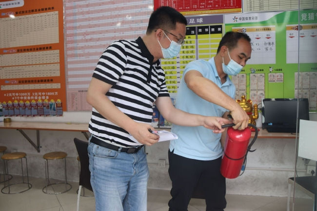 在进行安全生产专项排查的同时,深圳体彩还对销售员开展了安全生产培训,向销售员普及安全生产知识,介绍灭火器等消防设备的使用方法等。