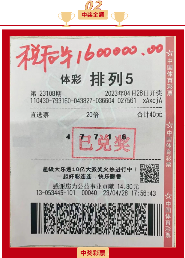 公益体彩,乐善人生。杨先生长期坚持购彩,持续为公益事业贡献爱心力量。这次他投注金额40元的中奖彩票,就为公益事业贡献了14.80元。 作为国家公益彩票,中国体育彩票筹集的公益金被广泛用于补充全国社会保障基金、抗震救灾、城乡医疗救助、教育助学、未成年人校外教育事业、残疾人事业、红十字事业、文化、扶贫、法律援助、农村贫困母亲“两癌”救助等多项社会公益事业,以及用于实施奥运争光计划、全民健身计划。