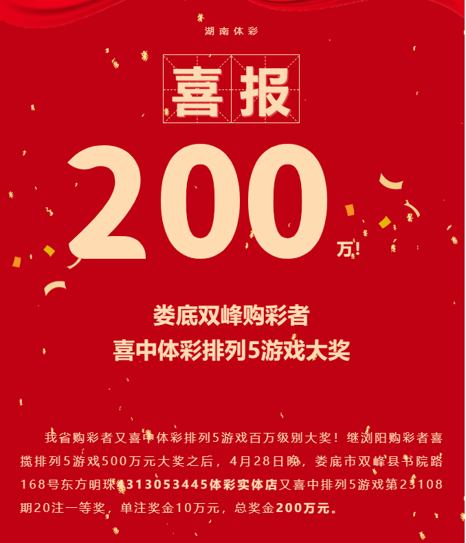 5月5日上午,在度过“五一”假期之后,来自双峰县的购彩者杨先生(化姓)带着妻子来到位于长沙市芙蓉区车站北路138号香泽南湖大厦一楼的湖南体彩服务大厅进行兑奖。他正是排列5游戏200万元大奖的中奖者,中奖彩票是一张20倍投注、投注金额40元的排列5游戏直选票。