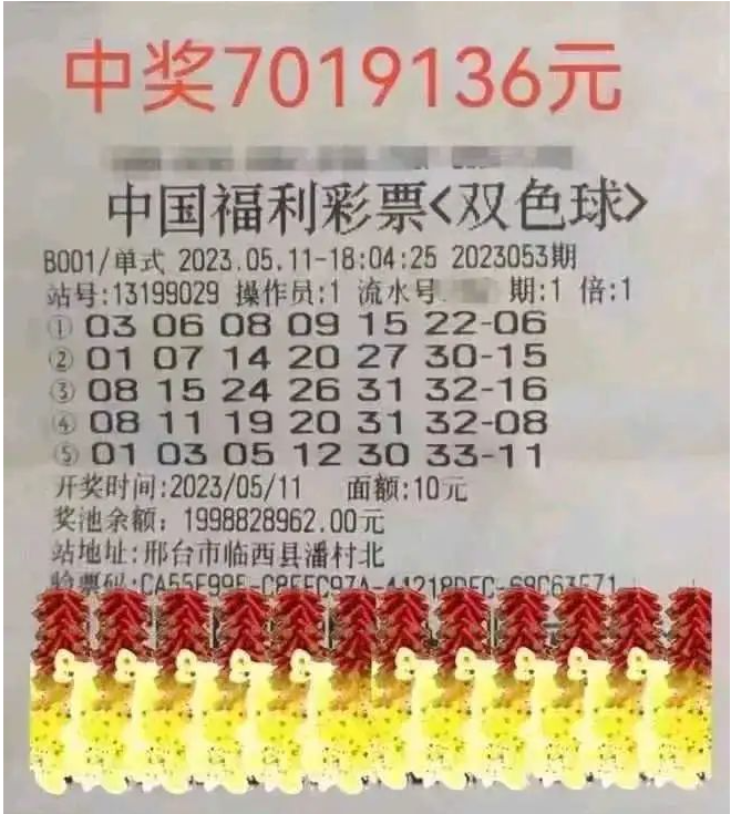 双色球第23053期开奖号码为01 07 14 20 27 30 15,河北中出2注一等奖,分别是邢台 13199029站,投注方式为机选10元5注;沧州13179055 站,投注方式为自选复式1848元11+2,中奖金额7019136元。