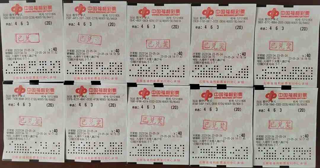5月24日,福彩第2023134期开奖,一位幸运的彩民在大理市下关雪人路27号第53101806号福彩销售网点中了20.8万元的大奖,他选择了号码“4、6、3”,并且投注了200倍。