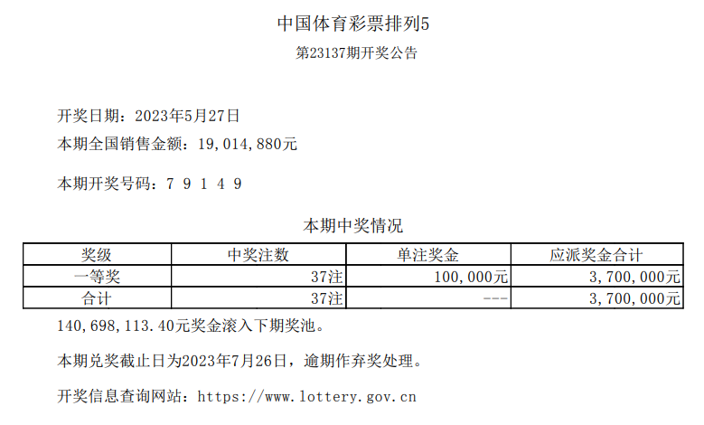 2023137期开奖结果79149