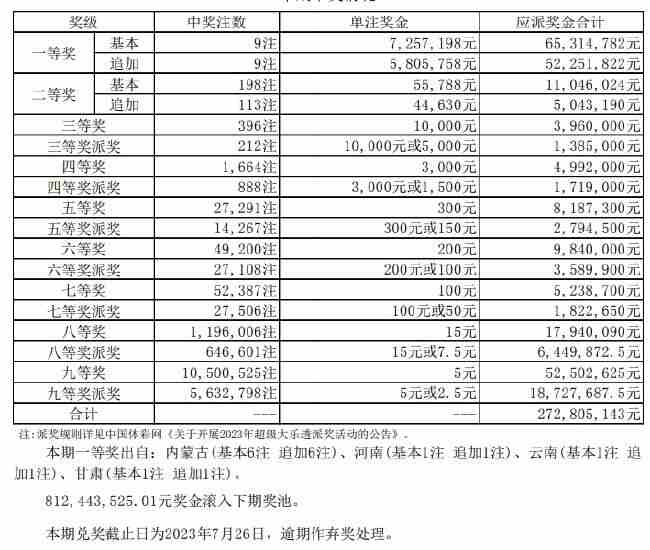 大乐透一等奖9注1306万 派奖收官