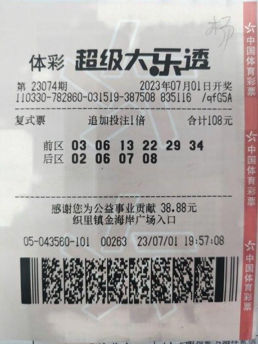 7月1日晚,湖州市织里镇金海岸广场3305043560体彩实体店中出了102余万元的大乐透二等奖。据销售员詹先生介绍,购彩者杨先生是店内的长期老顾客,也是一位体彩大乐透的忠实粉丝,每次进店都会购买并进行机选复式投注。这次他选择了机选复式“6+4”的投注方式,同时还进行了追加投注,最终喜中了3注大乐透二等奖。他表示,复式投注比单式票中奖概率提高不少,以后会继续支持中国体育彩票,理性投注,为公益事业贡献一份力量。