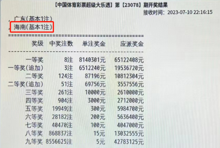 昨晚海南人喜中大乐透814万大奖