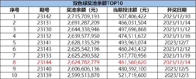 此外,本期一等奖特别奖加奖共2000万元全部派完,按照派奖规则,下期(第23145期)一等奖特别奖派奖金额为2000万元,六等奖翻番奖奖金余额72,410,720元。