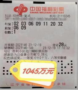 2023年即将过去,盘锦福彩传来好消息,一位彩友以28元将1045万元收入囊中。中奖者是一位30出头的小伙子,经常在胜利小区的245号销售网点购彩,号码是将自己、妻子和女儿们的生日编到一起,组合了一组28元7+2的复式号码。他和站主杨姐相处得特别融洽,彼此很是信任。因为疏忽忘记购票,与二等奖擦肩而过,让他懊悔不已。但错过的幸运没有消失,反而加倍。