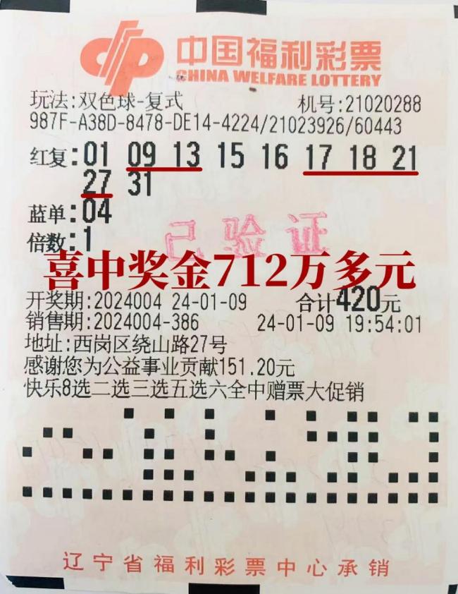 1月9日晚,双色球第2024004期在福彩大连彩市开奖,又一次中出了大奖。这次中奖的是位于西岗区绕山路27号的第21020288号福彩代销站,幸运地中得了一注双色球一等奖。这是继5天前中山区解放路242号的第21020155号福彩代销站和高新园区黄浦路500号的第21020139号福彩代销站分别中出545万元大奖之后,2024年的第三注双色球头奖。1月10日,获奖者齐先生(化姓)亲自前往市福彩中心办理了兑奖手续。