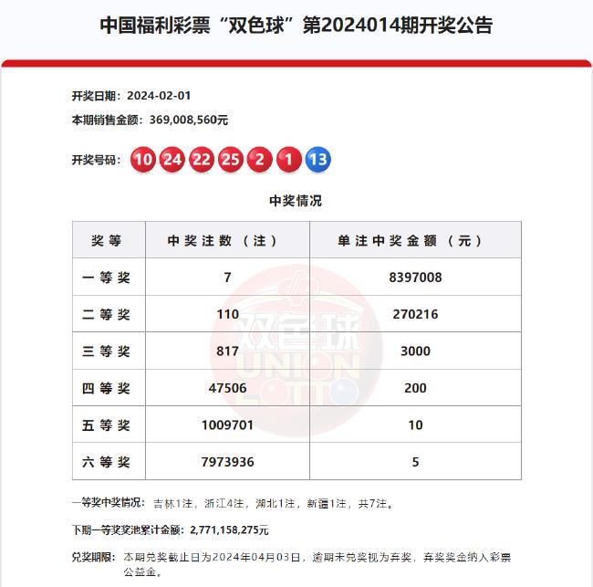 北京时间2024年2月1日,福彩双色球第24014期开奖,以下是详细开奖流程: