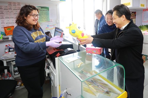 为庆祝第114个“三八”国际妇女节,致敬长期工作在销售一线的女代销者和女销售员,3月6日、7日,北京市体育局二级巡视员张华、北京体彩中心主任娄小晶、副主任耿贞晖带队,走访慰问女代销者和女销售员。
