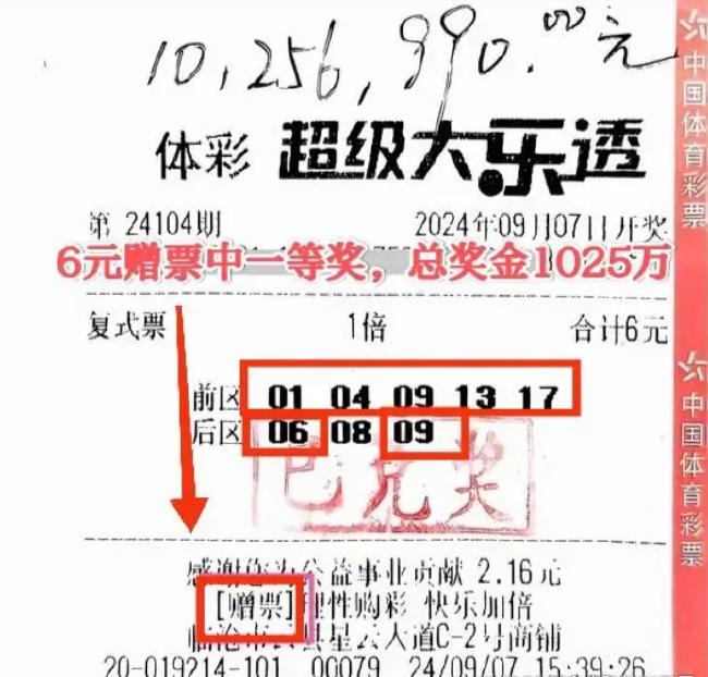 其实在大乐透开奖历史上,凭借赠票中大奖的事例并不少见。就拿今年来说,9月7日第24104期云南彩民就以6元赠票中得1025万大奖、7月3日第24076期南京彩民更是凭借2元赠票中得1000万大奖。