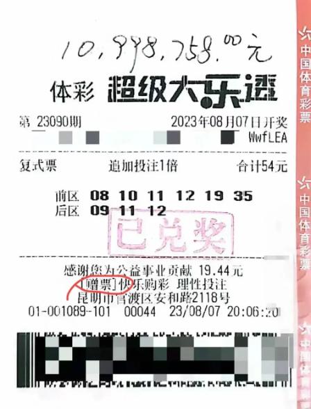 2023年11月8日第23128期,浙江彩民凭借6元赠票中得1800万大奖;2023年8月7日第23090期,云南彩民凭借54元赠票中得1099万大奖。