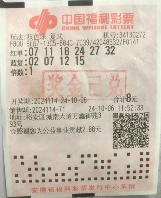 金秋十月,一个温馨而感人的故事悄然上演,责任与幸运交织。10月6日,双色球第2024114期的开奖揭晓,开奖号码为:07, 11, 18, 24, 27, 32,蓝球04。在六安市裕安区城南大道万鑫御苑393号的第34130272号销售网点,一位彩民幸运中得二等奖4注,总奖金403132元,每注奖金100783元。