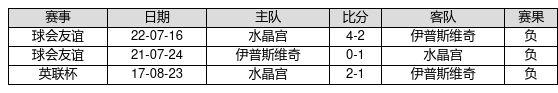 伊普斯维奇 VS 水晶宫两队近10年的交战次数为3场,伊普斯维奇0胜0平3负,赢球概率为0.0%,平局概率为0.0%,输球概率为100.0%。
