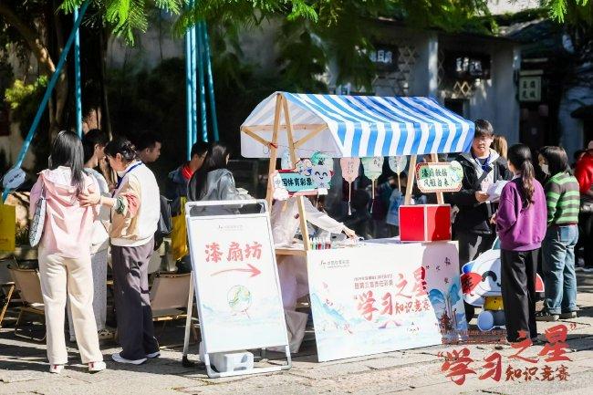 白墙黛瓦青石阶,水绿山翠相依偎。走进甘坑古镇,仿佛踏入时光幽径,一砖一瓦、一梁一柱皆诉说着往昔的故事,源远流长的非遗文化也在这里赓续传承。深圳体彩与甘坑古镇跨界联动,精心设置了扎染、中国结、漆扇、中药香囊、风筝五个非遗文化互动体验区。体彩代销者、销售员、专管员穿梭于古色古香的小镇中,开启了一场集非遗文化、答题闯关、趣味打卡于一体的文旅新体验。