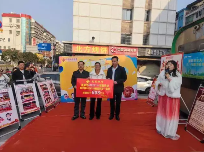 在湘潭岳塘区建设中路一大桥附近,有一家仅10平方米的小小福利彩票店,7年来,竟然开出了两次双色球一等奖,这让店主龙春桃被大家称为“有福之人”。12月3日下午,市民政局和市福彩中心在店前举行了隆重的颁奖仪式。龙春桃回忆道:“这张中奖的彩票是在12月1日晚上约19点卖出的。”她虽然不确定中奖者的身份,但坚信这位幸运彩民是一位老彩民,购买的是双色球复式7+1,总花费14元。当天21点15分开奖后,省福彩中心监测到湘潭的彩民中得了一等奖。根据相关规则,这张彩票中出了一等奖1注,三等奖6注,总奖金高达603万元。