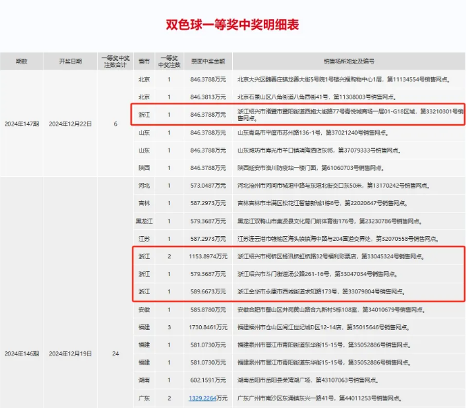 绍兴人真是好运连连!12月22日晚开奖的双色球2024147期,再次迎来了绍兴人的幸运,这次奖金高达846万元!中奖的彩票是在绍兴市诸暨市暨阳街道西施大街77号青悦城商场一层01-G18区域的福彩销售网点(第33210301号)售出的。而就在上一期双色球2024146期的开奖中,绍兴人也收获了好运——上周四(12月19日)晚,绍兴市就中出了3注双色球一等奖,其中绍兴柯桥杨讯桥的幸运彩民中了2注,单票奖金高达1153万元!而越城区斗门街道的另一位幸运儿则收获了579万元。没想到,刚刚度过一个双休日,幸运又再次降临。