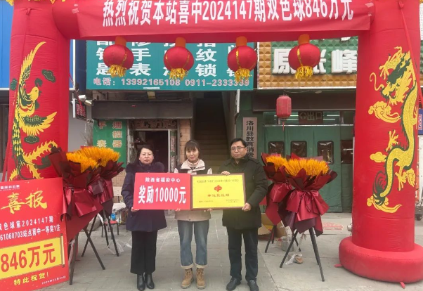 12月22日晚,洛川县一位彩民在中国福利彩票老广场61060703投注站购买的一注福彩双色球中得一等奖,奖金高达846万元。12月23日下午,延安市福利彩票中心的工作人员前往该投注站,为其颁发了“幸运投注站”荣誉称号,并奖励站点负责人1万元奖金。投注站负责人韩霞霞表示:“我的店已经运营了8年,这是第一次中得这么大奖。这位彩民在这里购买彩票已有两年多,这次花2元钱购买了一注,终于中了大奖,我也非常高兴,希望更多的彩民朋友能中大奖。”