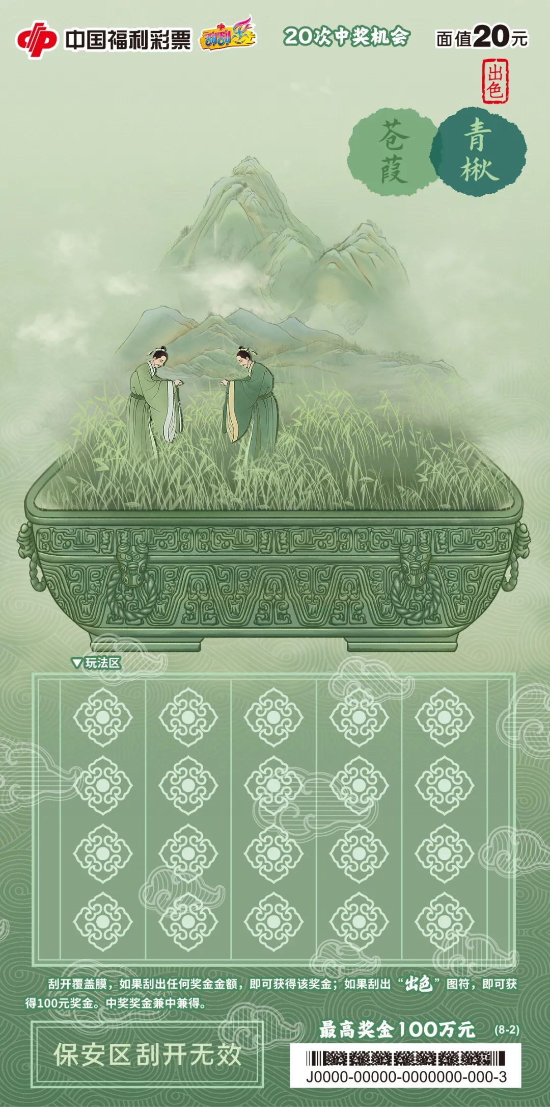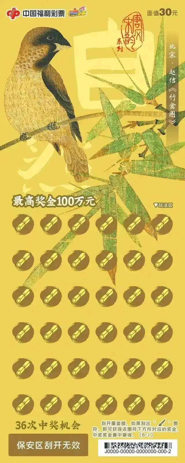 该票面采用唐代和宋代名家的绘画作品作为设计元素,将传统的艺术元素结合现代的排版和设计手法,使彩票既具有古典韵味又不失现代感。