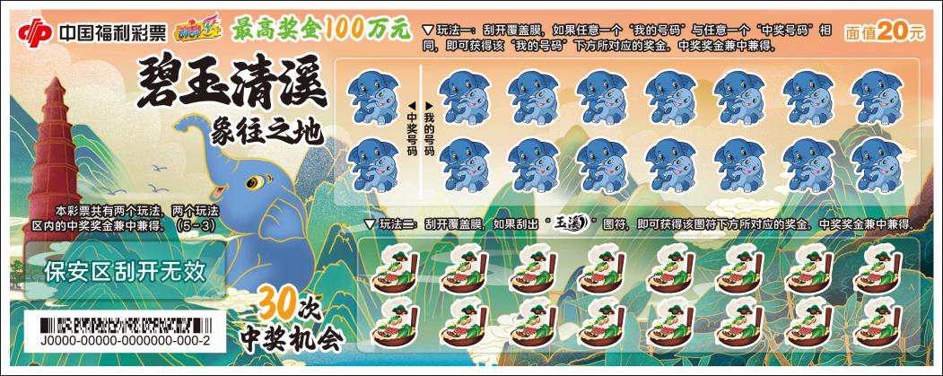 以云南玉溪的风景名胜、历史人文为主题设计的一款特色彩票。票面融入各种极具云南独特魅力的代表性元素,展现了云南自然纯净、大美和谐、生态宜居的形象。