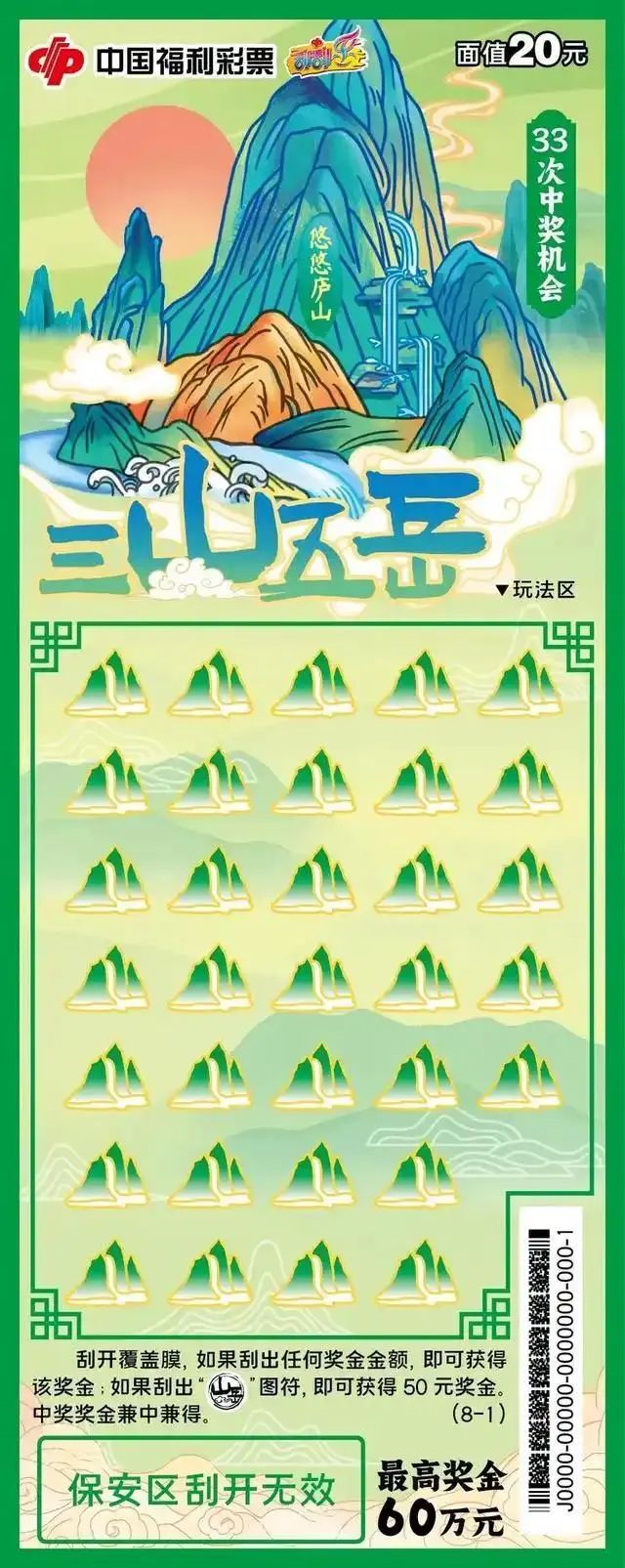 山川桥梁,是自然的馈赠、是人类的智慧,刮刮乐以其为票面,记录下不同的地貌特色和人文景观,反映出中华民族的大好河山。