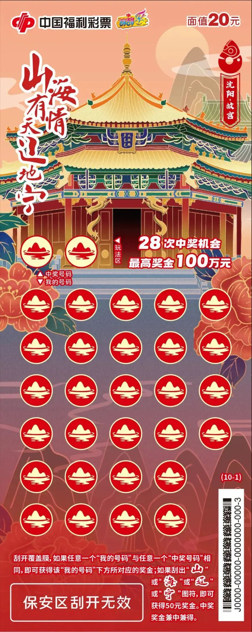 以辽宁省著名文旅资源为画面设计而成的一款极具地方特色的主题彩票,通过沈阳故宫、盘锦红海滩、大连金石滩等特色景观带领购彩者领略辽宁的地域风情和人文情怀。