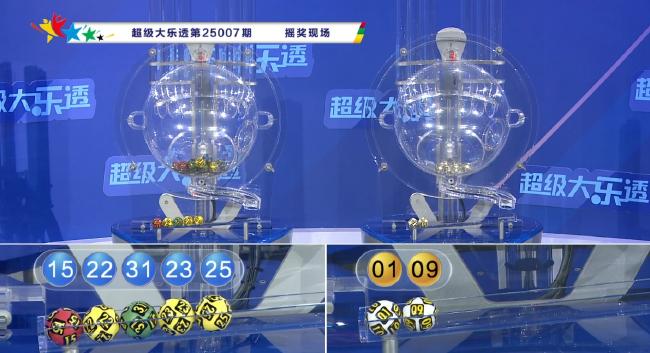 北京时间1月15日晚,体彩大乐透第25007期开奖,当期开奖号码为:前区15 22 23 25 31,后区01 09。