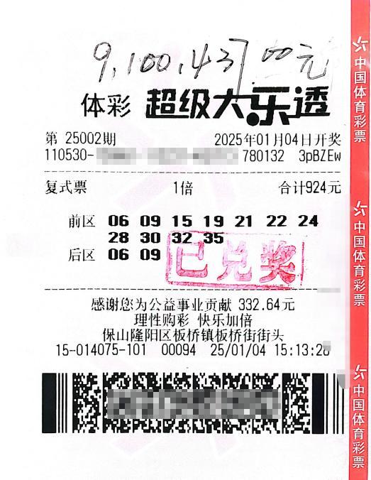 二胎父亲以924元投注幸运中得大乐透910万